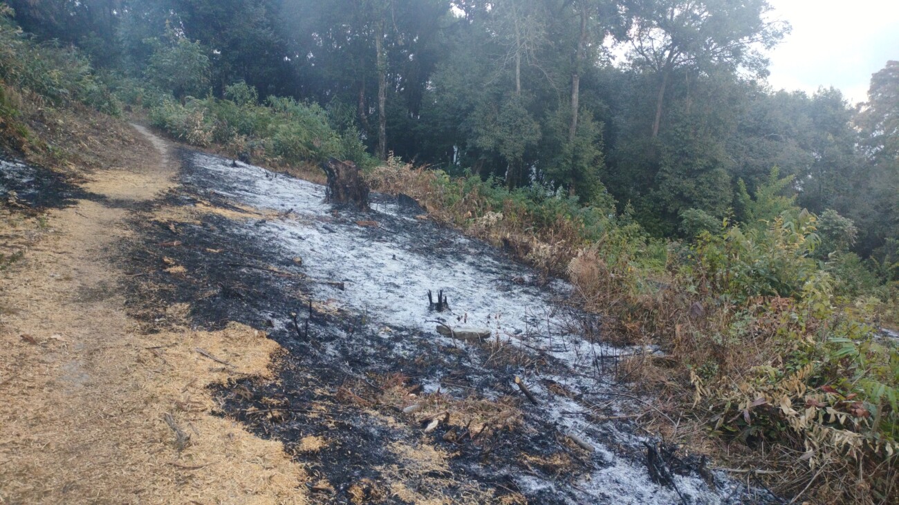 पश्चिम सिक्किमको रिन्चेनपोङमा खेती गरिएको क्षेत्रसँगै जलेको ठाउँ।//तस्बिर: सिर्जना शर्मा